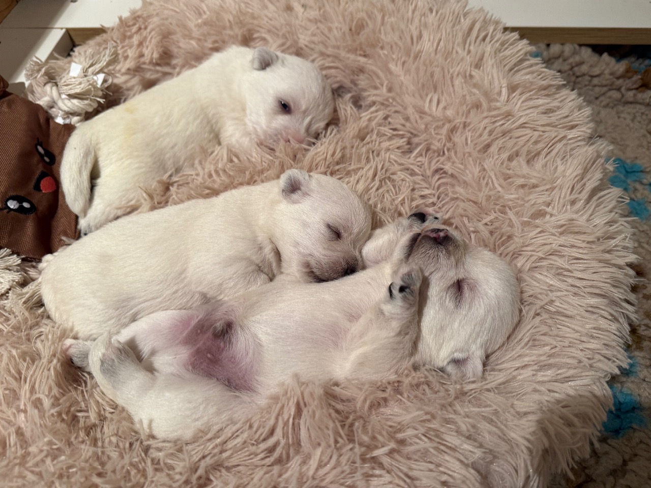 Rodiči tohoto vrhu jsou Jackie Star West a již v našem chovu osvědčený Zackshine Oscar Della Renta